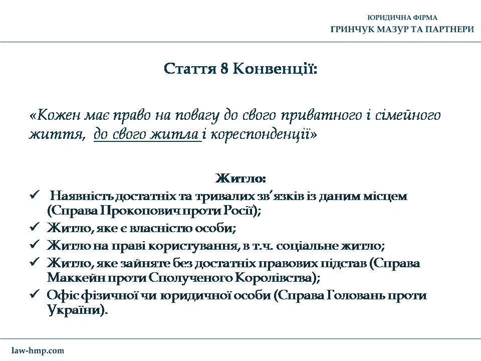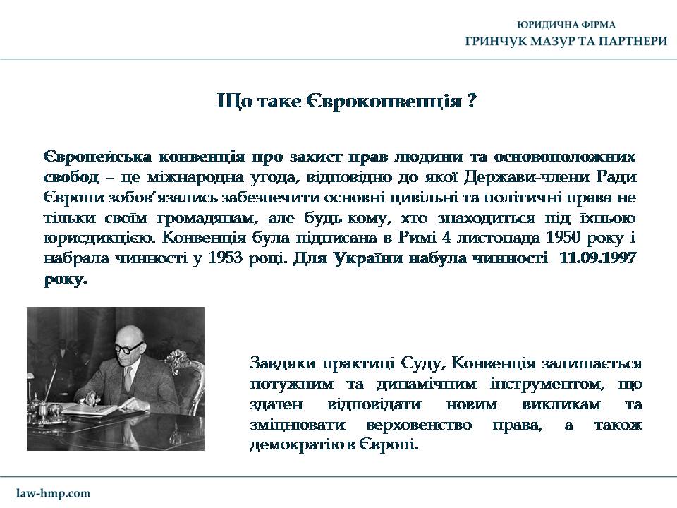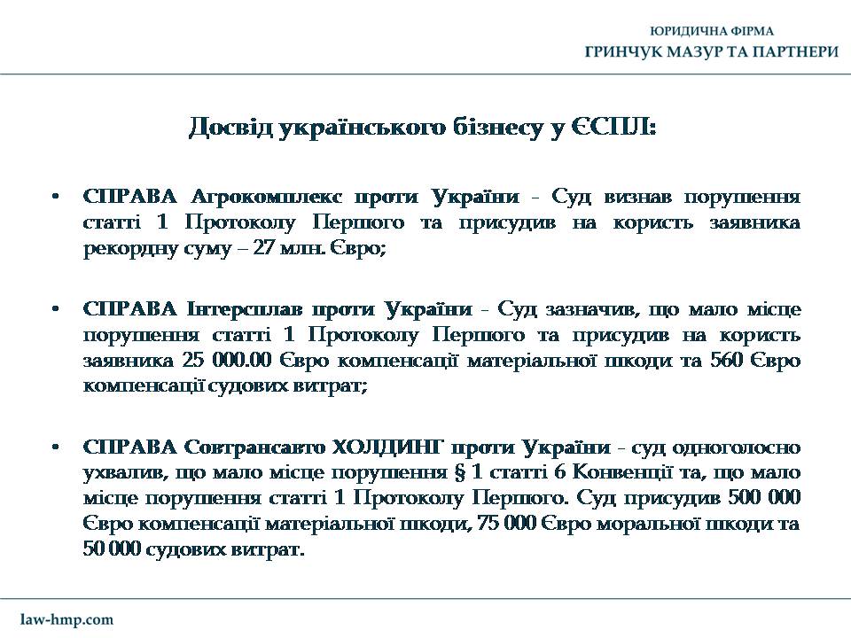 Презентация с выступления на конференции во Львове управляющего партнера ЮФ «Гринчук Мазур и партнеры» Андрея Гринчука на тему «Что нужно знать для защиты своих прав в Европейском суде по правам человека».
