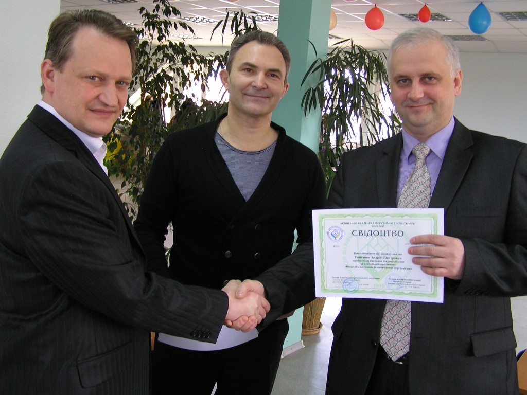 Свидетельства о прослушивании курсов «Операции с жилой и нежилой недвижимости» 31 марта 2012 года вручал президент АСНУ Злыдень Сергей Анатольевич.