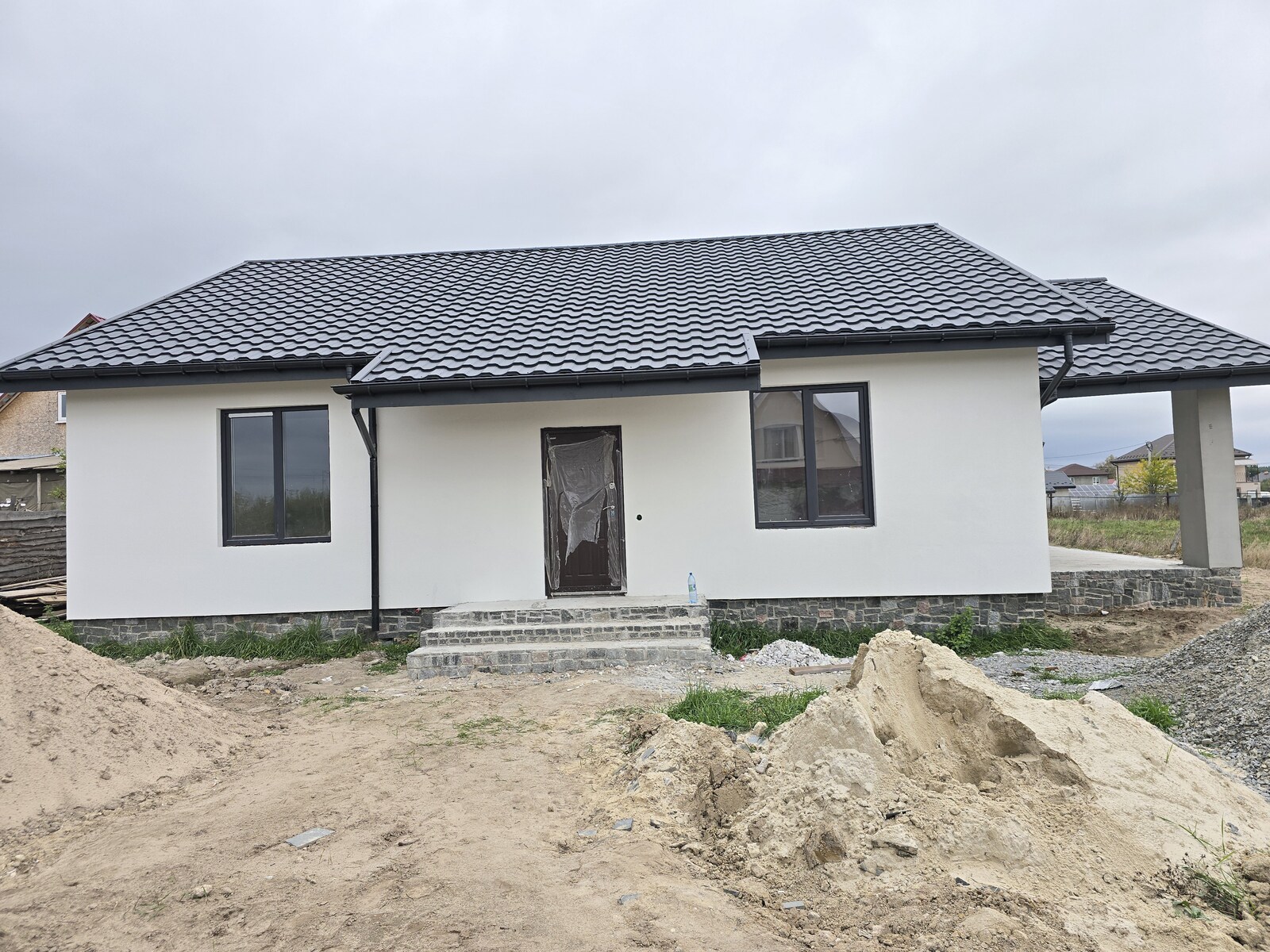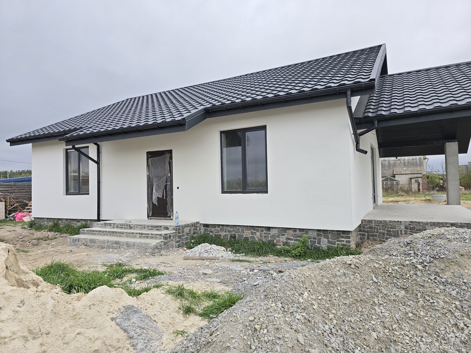 Продаж одноповерхового будинку незавершенного будівництва в с.Тетерівка. Ділянка 10 соток приватизованої землі. Загальна площа 120м.кв., 3 окремих кімнати,2 санвузла, кухня-вітальня 45м.кв., тераса, тепла підлога, світло 15кВт.,криниця, септик.