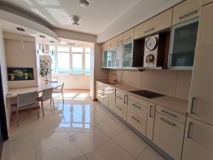 Продам 3к ЖК “Славний” по вул.Симферопольскій 11. Квартира розташована на 9 поверсі 16-ти поверхового будинку. Загальною площею 166,7м.кв., складається з двох окремих великих спалень (30,1 та 24,6м.кв.), вітальні 37,9м.кв, кухні 19,8кв., двох санвузлів (10 та 4,8м.кв) та передпокою 11,3м.кв.. В квартирі виконаний ремонт з використанням якісних матеріалів. Санвузол повністю виконаний з натурального оніксу, встановлена шведська сантехніка, ванна з гідромасажем, духова кабіна з масажем та парилкою. Гостьовий санвузол в кахлі. В житлових кімнатах підлога виконана з бамбукової паркетної дошки, а в передпокої з натурального каменю. Кожна кімната обладнана окремими гардеробами. Доволі вмістка пральна кімната з місцем для зберігання всього необхідного. По всій квартирі встановлені кондиціонери Daikin. Квартира обладнана меблями та технікою. Величезною перевагою цього будинку є власна котельня, яка забезпечує мешканців опаленням та гарячою водою. До того ж температуру в квартирі можно власноруч регулювати, а власний лічильник на тепло дозволяє контролювати витрати на комунальні платежі. Неймовірний вид на річку Дніпро! В максимальний близькості розвинена інфраструктура та все необхідне для активного відпочинку дорослих та дітей!
