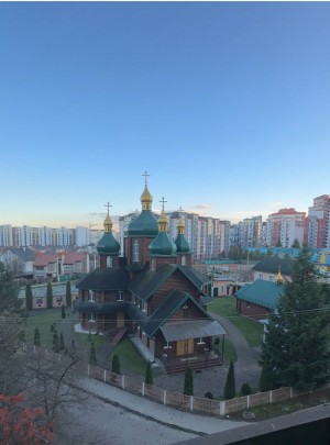4-й поверх цегляного 9-поверхового будинку. Східна сторона, гарний вид на церкву та стадіон.