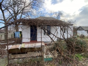 На ділянці є старенький будинок у житловому стані (площа 53,1 м2, дві кімнати), побудований з дерева, обкладений цеглою, утеплений пінопластом і поштукатурений. Опалення газове. Також є сарай із шлакоблоку, погріб.