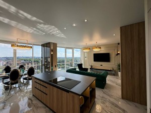 Квартира площею 107/56.7/23.7 м.кв розташована на 10/14 поверсі з неймовірними краєвидами, що відкриваються з панорамних вікон. Ремонт виконаний з дорогих та якісних матеріалів у світлих, спокійних тонах. Є 3 кондиціонери. Тепла підлога по всій квартирі. Квартира на електриці. У квартирі продумано все до дрібниць, починаючи з санвузла, закінчуючи просторими гардеробними. Простора кухня-вітальня дозволить приймати багато гостей. Залишається абсолютно все: меблі, техніка. Заходь і живи. Ця розкіш чекає на тебе. Вартість 257000 у о +12 % оформлення