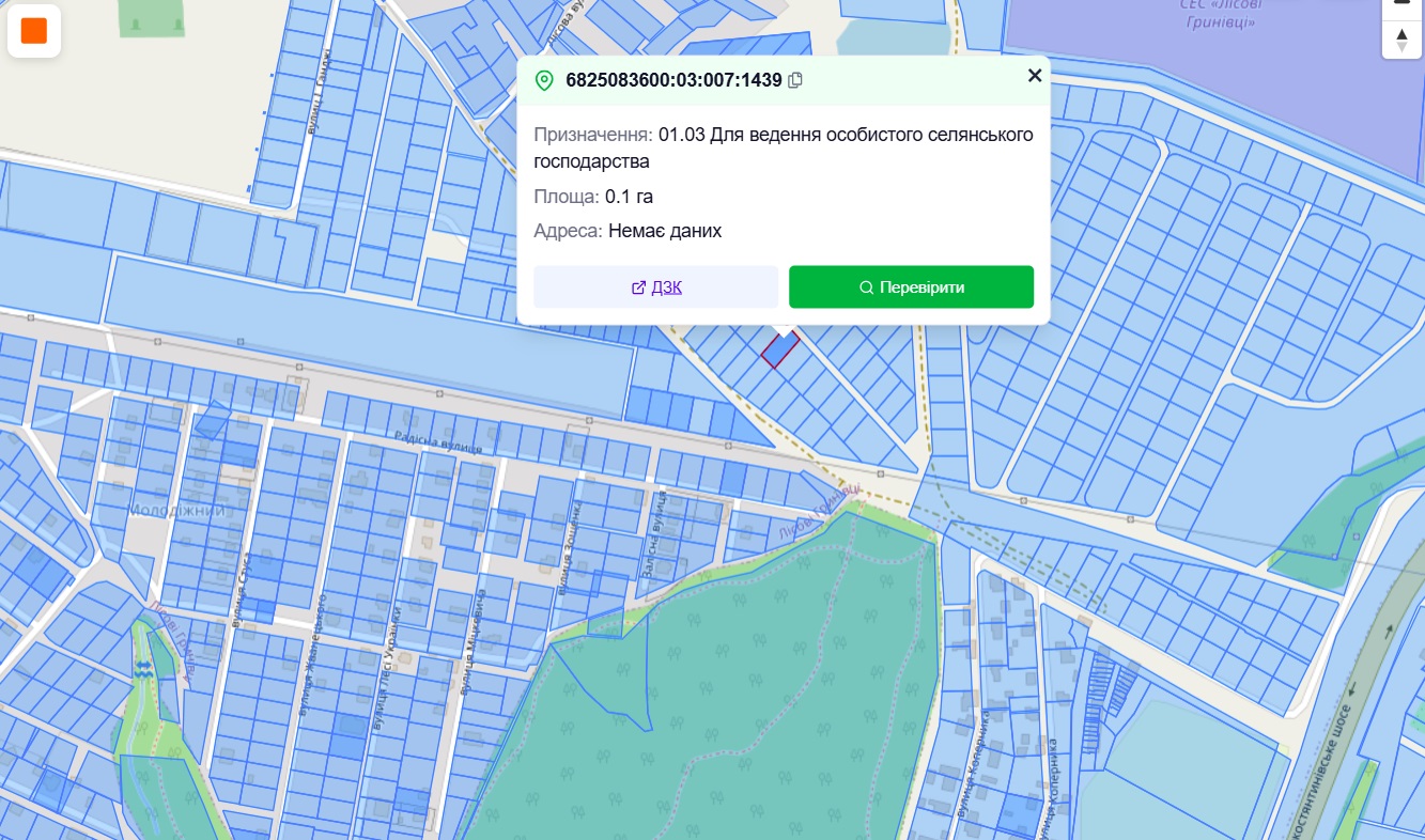 Продам земельну ділянку в передмісті Хмельницького, Лісові Гринівці. Площа: 10 соток Вартість: 17000$ + витрати на переоформлення. Кад.№: 6825083600:03:007:1439 Призначення: 01.03 ОСГ. Власність: приватна. Розташування: знаходиться в масиві між Лісовими Гринівцями та районом "Молодіжний", дорога грунтова. До лісу 200м. Перспективний район. Ділянка правильної прямокутної форми 22*44 м. Ділянка не кутова, майже без схилу. Гарна інвестиція. Можна змінити призначення під будівництво. Пропозиція від представника власника.