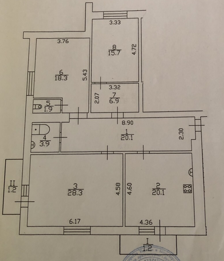 Комнаты - 28,3м, 18,3м и 15,7м,