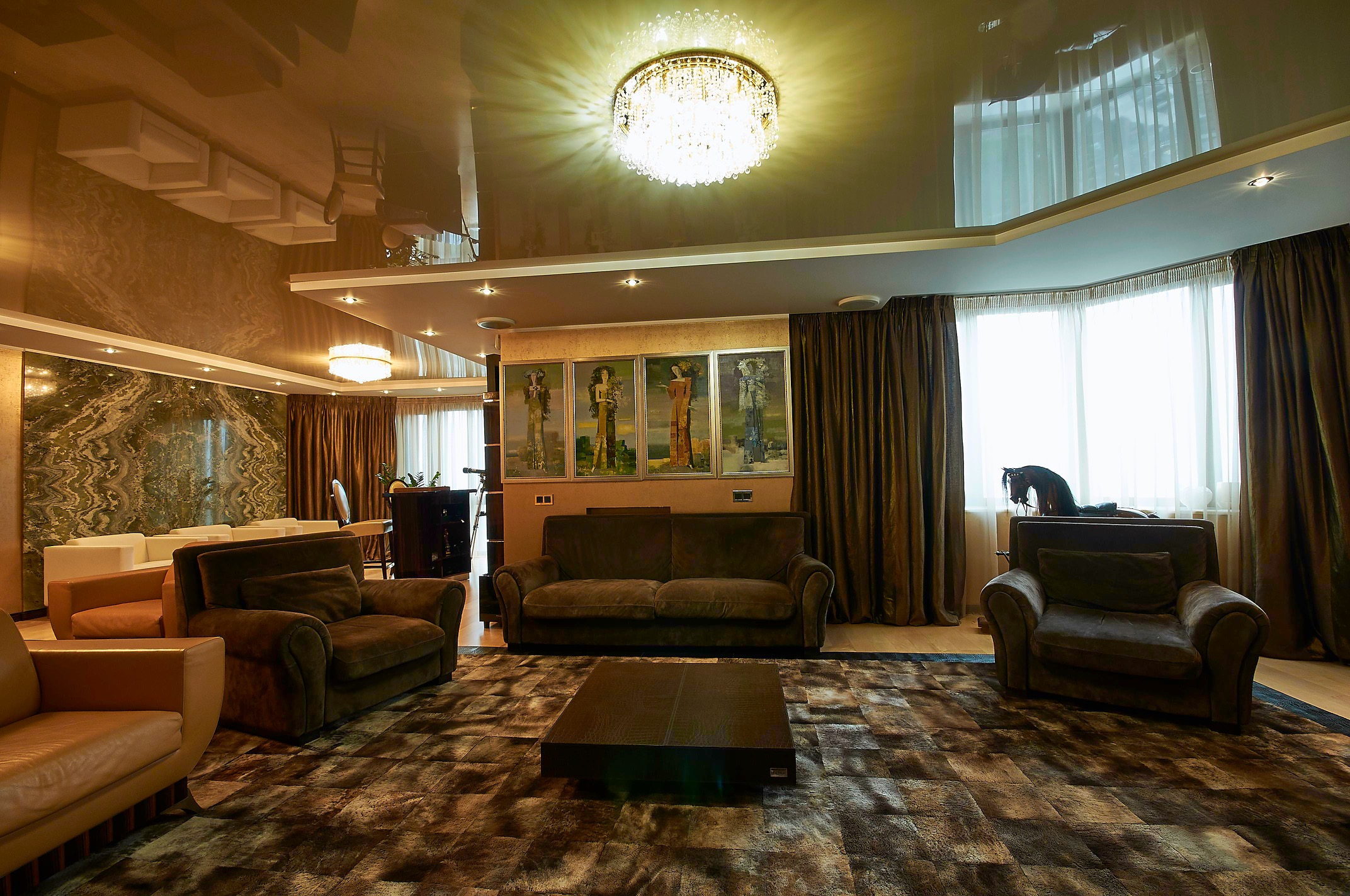Эксклюзив! Без комиссии! СПП 1%! Печерск, Старонаводницкая ул., 4-В. Роскошные апартаменты с богатым дизайнерским наполнением в элитном охраняемом доме в Центре столицы! Закрытая территория дома, круглосуточное наблюдение, многоуровневая система безопасности доступа, личные карты на свой этаж. Лифт спускается в паркинг. Апартаменты, общей площадью 365м2 занимают весь 22 этаж с видовым обзором практически по кругу. Центральную часть квартиры занимает просторный зал с панорамными окнами, который объединяет в себе большую кухню и обеденную зону (94м2). Гостевая или приватная половины полностью автономны друг от друга. Приватная половина (110м2): две спальни с полноценной ванной комнатой (душ-джакузи, ванная) и большая главная спальня с ванной комнатой с отделкой из оникса (джакузи, душ). В гостевой половине (96м2) размещены несколько функциональных зон: диванная группа с домашним кинотеатром; лаунж зона с баром и панорамным окном на р.Днепр и скульптуру Родина-Мать; а также гостевая спальня. Значительную площадь квартиры (61м2) занимают несколько гардеробных комнат, технические комнаты с постирочной и кладовыми. В отделке стен и пола использованы мрамор и оникс. Интерьер наполнен итальянской мебелью топовых мировых брендов, есть потолочная акустика, подогрев полов и кондиционеры, сигнализация с датчиками движения и вибрации на стенах и окнах, защитная пленка на окнах. Все выполнено для комфортного и безопасного проживания. В стоимость входят два больших паркоместа в подземном паркинге!