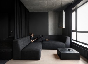 Релакс зона с установленным угловым диваном, ориентирована в сторону окна с панорамным видом на город.