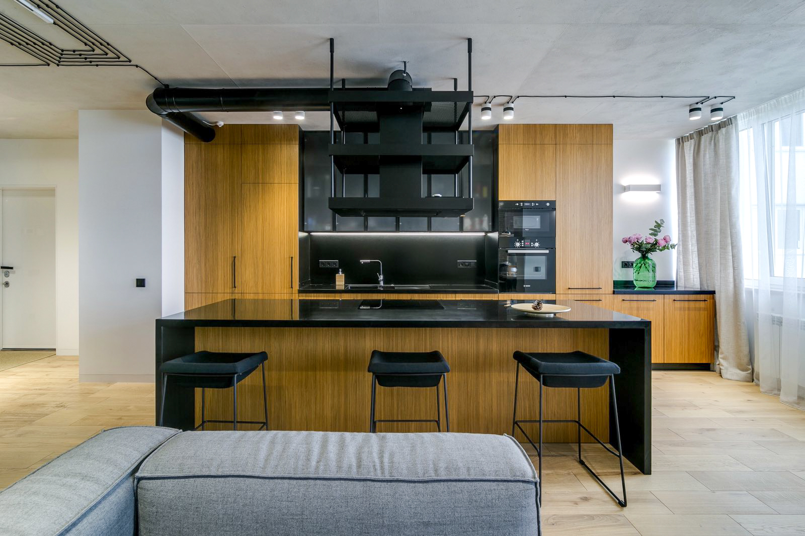 Выполнен современный авторский ремонт. Отделка из премиальных материалов (дерево, камень, медь), уникальные элементы декора выполнены по эскизам. Двойная звукоизоляция потолков и стен. Паркетная доска дуб: Woodheart Укомплектована необходимой мебелью и техникой: Кухня: Bosch, Whirlpool. Сплит система кондиционирования Daikin Мебель (диван, кровать) Interia Подогревы полов: с цифровыми регуляторами DEVI Сантехника: Willeroy&Bosch;, Kludi, Hansgroe.